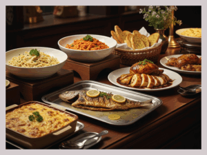 Buffet Style, Guests serve themselves from a beautifully arranged spread.