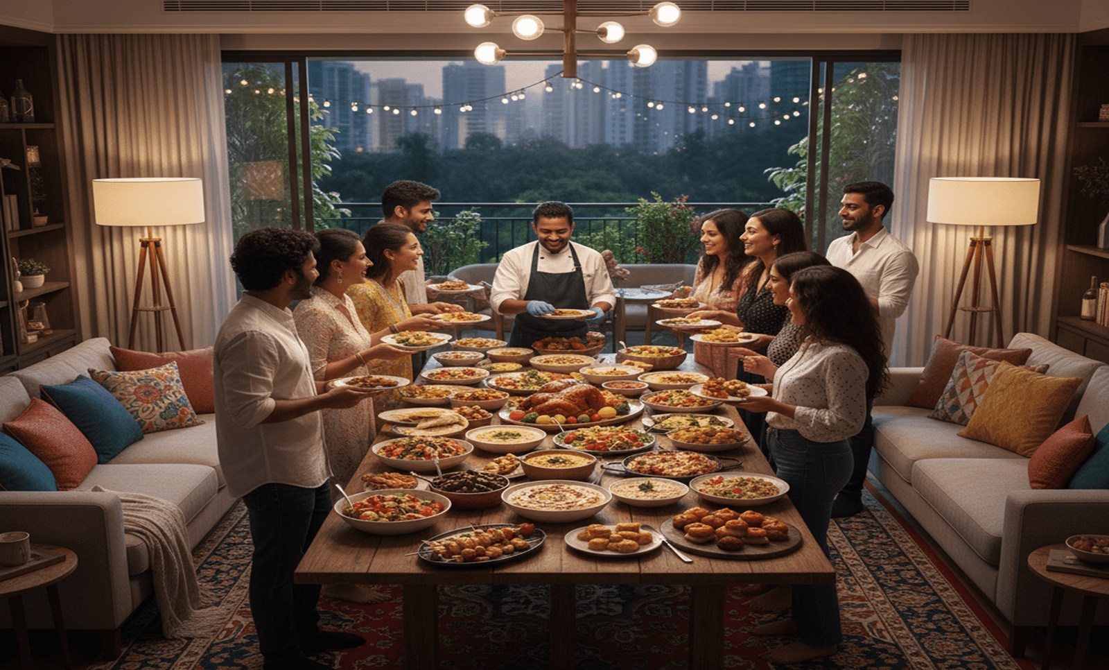 Host intimate gatherings with ease using our house party Mediterranean food catering Bangalore services, designed for those who love Mediterranean buffet setups, Greek food catering Bangalore options, and Middle Eastern catering Bangalore flavors: