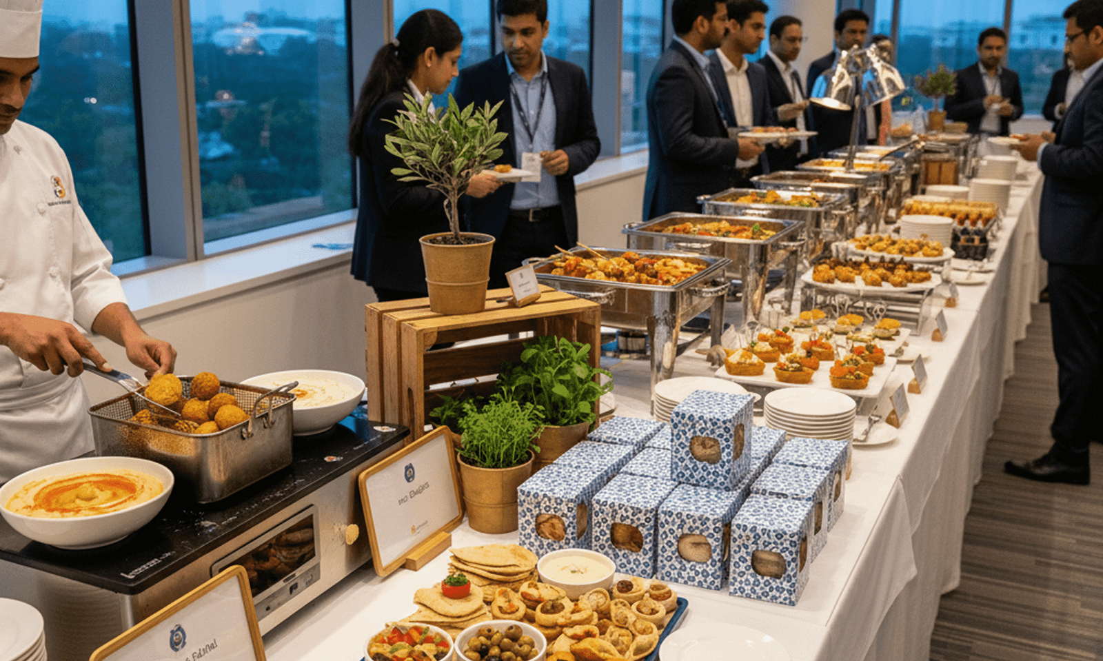 Elevate your business events with professional Mediterranean corporate catering in Bangalore that leaves a lasting impression. Our corporate menus include elements of Mediterranean buffet style setups, Greek food catering Bangalore flavors, and Middle Eastern catering