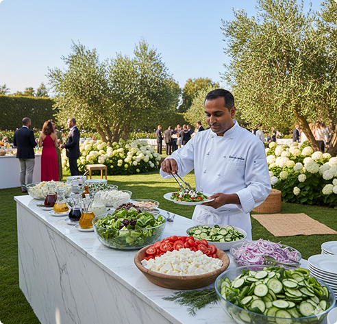 - Greek Salad Station: Traditional Horiatiki salad with lemon vinaigrette.