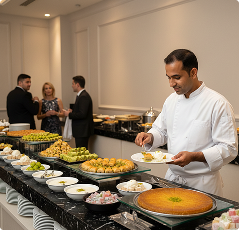 - Turkish Dessert Station: Includes Baklava Cheesecake Bites and Kunafa